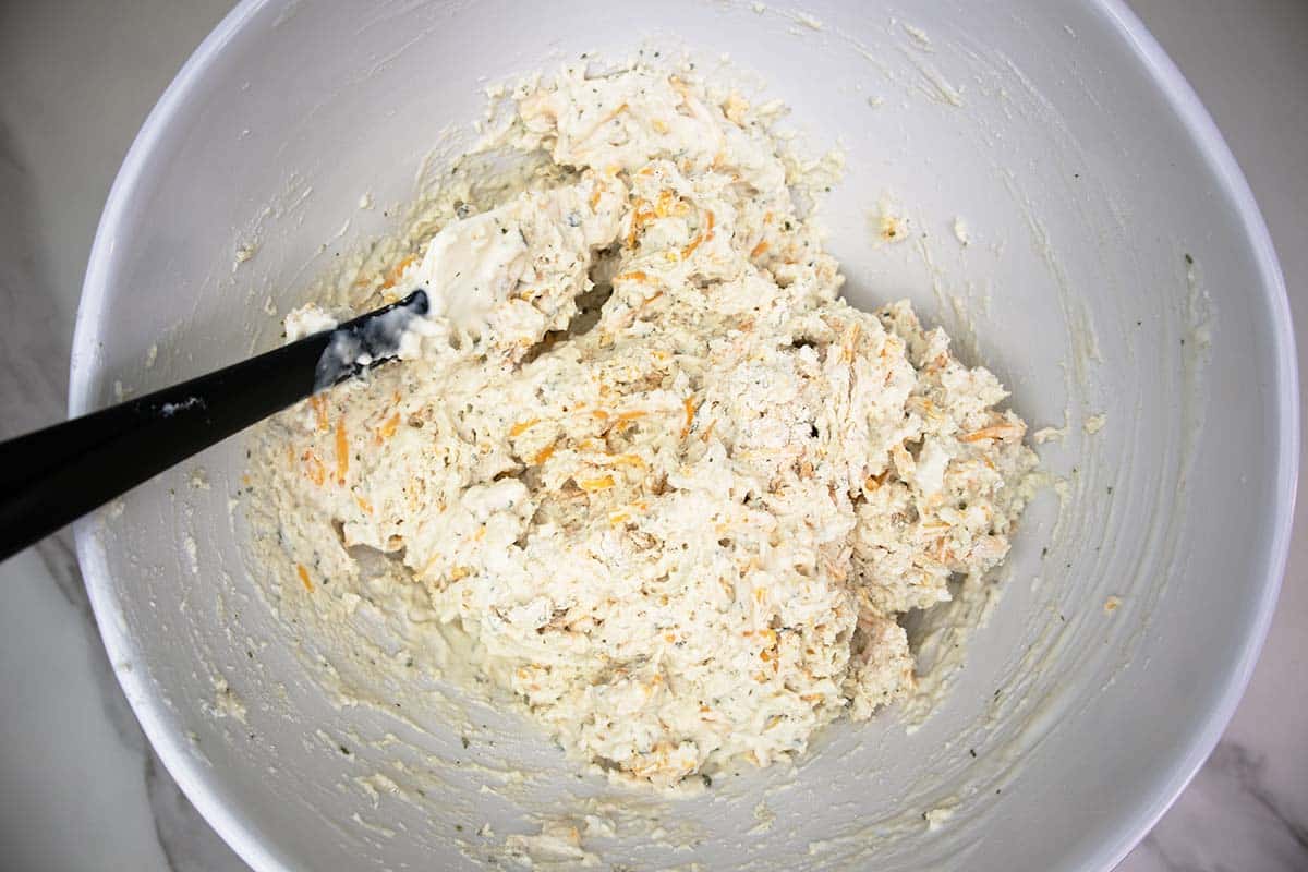 - Gently fold in the shredded cheddar cheese.