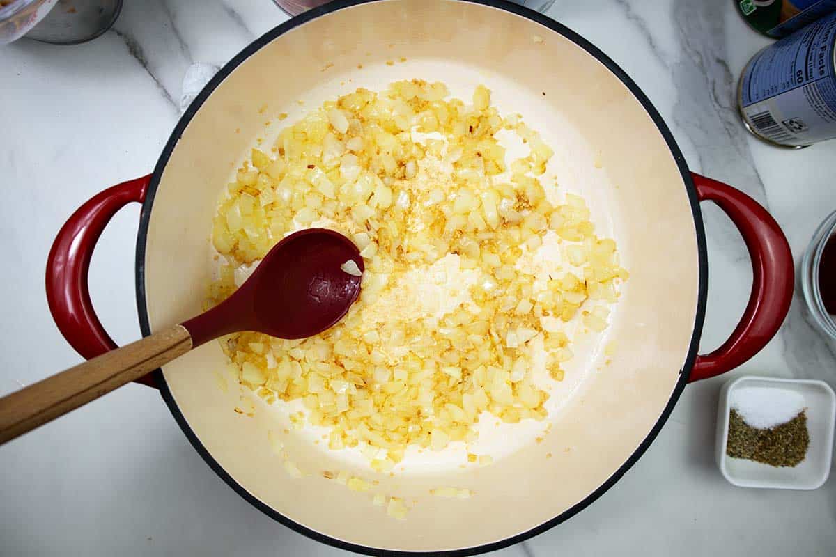 - Melt 3 tablespoons of butter over medium heat. Add chopped onion, cooking until translucent, then add minced garlic and cook 1 more minute.